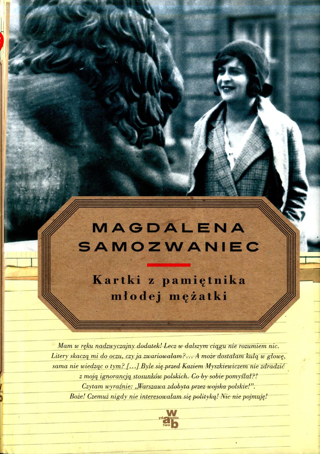 Warszawy czar i Kazio-talizman, czyli o przewrocie majowym z perspektywy hotelowego okna. Magdalena Samozwaniec przedstawia beztroską Mimi Bigourdan, a właściwie Mimi przedstawia się sama: äPostanowiłam pisać pamiętnik, aby utrwalić swoje wrażenia pierwszych dni w Polsce po długoletnim pobycie w Paryżu". Mimi kocha Warszawę, przyjaciel Kazimierz mówi o miłości, pamiętnik kipi emocjami i skrzy się humorem. Wrażeń jest bez liku, a wszystko szalenie zabawne. "Zwyciężamy. Wciąż słyszę okrzyk na cześć naszych wodzów. Tłum ludzi przeszedł pod oknami Bristolu, śpiewając piękną pieśń: Nie damy ziemi skąd nasz ród. O, nie, nie damy! Jest to wzniosłe i porywające. Przyłączyłam się w duchu do śpiewających. W dali słychać grzmot nieustanny armat, bomb i kartaczy. Moja niesłychana odwaga wprost mnie przeraża. Ce sang froid!" Zaskoczona wydarzeniami Mimi na swój sposób interpretuje sytuację obserwowaną przez szyby hotelu Bristol (a jeszcze do tego uruchamia wyobraźnię). Rzecz o przewrocie majowym z 1926 roku - niezwykle przewrotnie. A poza tym o doktorach, kokietowaniu i bólu istnienia. Ot, problemy młodej mężatki. Posłowie do książki napisał znany publicysta Jan Wróbel.