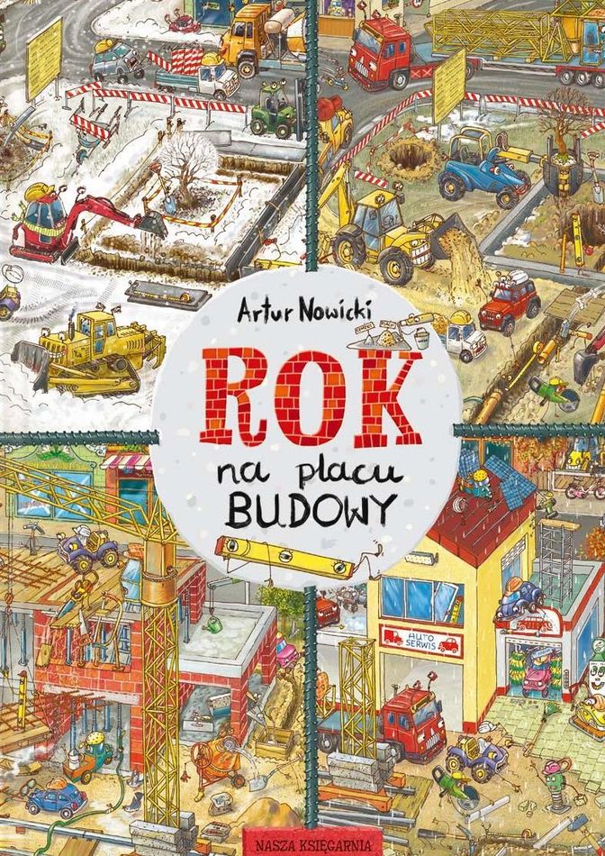 Rok na placu budowy / ilustracje Artur Nowicki. - Warszawa : Wydawnictwo Nasza Księgarnia, Copyright 2020. - [30] stron : ilustracje kolorowe ; 31 cm.